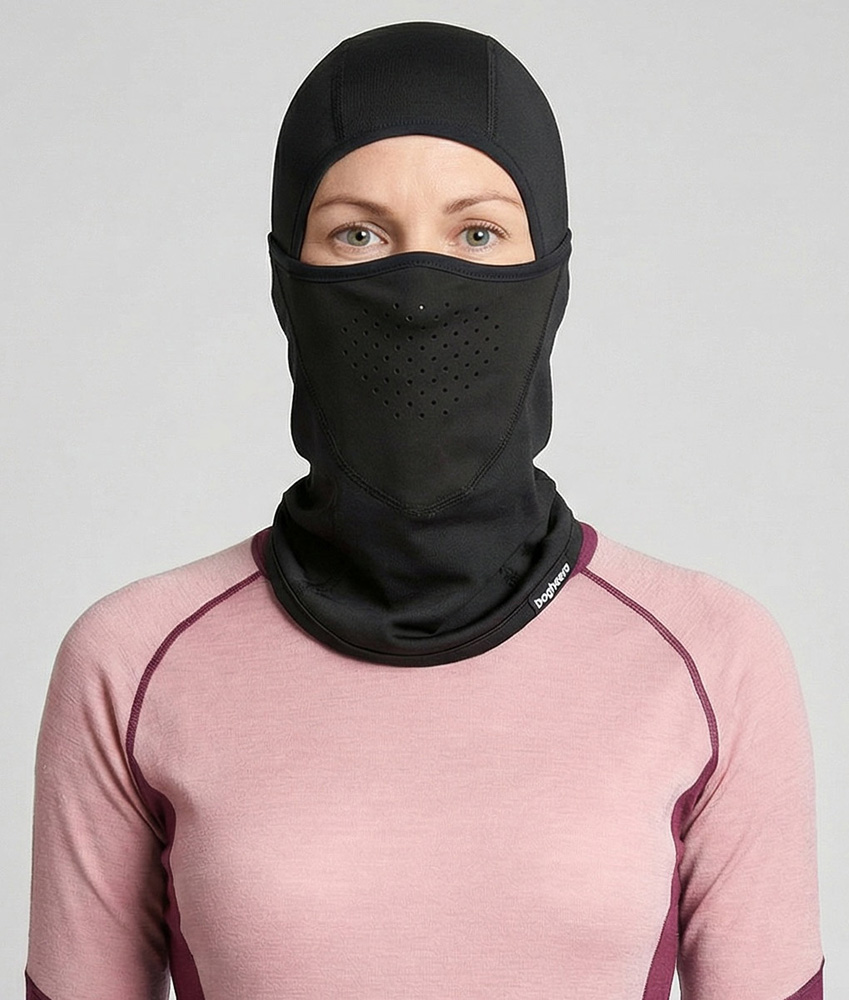 Combo Balaclava har ett vindtätt membran framtill, perfekt vid kyliga förhållanden. Andningshål gör att du känner dig bekväm trots att mun och näsa är skyddade. Balaclavans munskydd kan dras ned under hakan om så önskas. Borstad insida för ökad komfort.