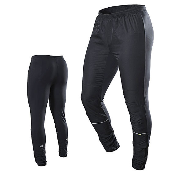 Löparbyxor och träningsbyxor med vind- och vattenavvisande microtyg på framsidan och elastiskt tyg som andas mycket bra bakpå. Formsydda knän med ventilation och korta dragkedjor I bensluten. En liten nyckelficka frampå och flera reflexer. Relativt åtsittande, unisex-passform.